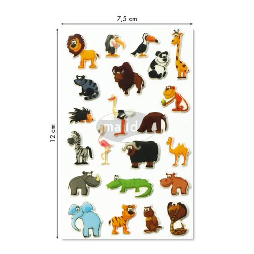 Samolepky Maildor 3D Cooky s motívmi zvieratiek zo savany as efektom 3D. Balenie obsahuje 1 hárok s 26 samolepkami. Rozmer balenia 7,5 x x12 cm.
