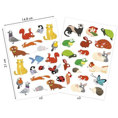 Samolepky Maildor Baby veľké veľkosti pre jednoduchú manipuláciu s detskými motívmi domácich zvieratiek. Balenie obsahuje 6 listov, 2 motívy po 3 ks. Samolepky je možné zlúpnuť a znovu nalepiť, vhodné pre deti už od 2 rokov. Rozmery balenia: 14,8 x 21 cm.