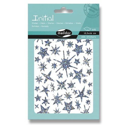 Samolepky Maildor Inital Holographic menšej veľkosti v tvare hviezdy s holografickým efektom. Balenie obsahuje 4 listy, 2 motívy po 2 ks. Samolepky je možné zlúpnuť a znovu nalepiť. Rozmery balenia: 10,5 x 16 cm.