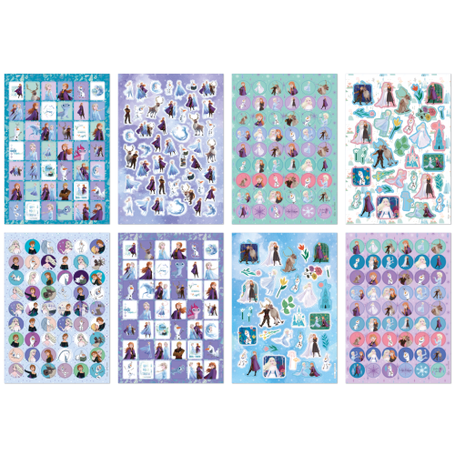 Trblietavé samolepky s motívom postavičiek z rozprávky Ľadové kráľovstvo. V zošite 8 hárkov. Rozmery 15x21 cm. Vek 3+