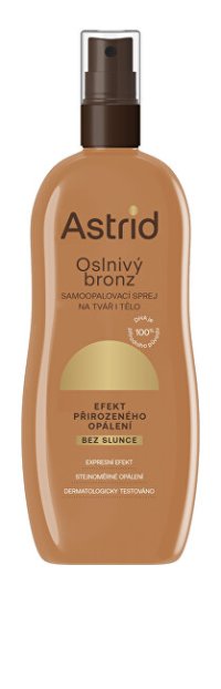 Samoopaľovací sprej prináša nový štandard v starostlivosti o pokožku. Vďaka unikátnemu zloženiu dosiahnete prirodzené zlatisto-bronzové opálenie bez škodlivého slnečného žiarenia. Inovatívne zloženie zaisťuje rýchle a rovnomerné opálenie, ktoré vydrží dlhšie ako kedykoľvek predtým. Hydratačný komplex s betaínom a glycerínom nielen skvele vyživuje, ale tiež predlžuje efekt opálenia, čím zaisťuje zamatovo jemnú pokožku. Navyše je produkt vegán, čo znamená, že je šetrný nielen k vašej pokožke, ale aj k prírode. Vyskúšajte Astrid sun samoopaľovací sprej a užite si krásne opálenie po celý rok.