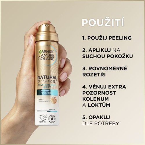 Samoopaľovacia telová hmla Natural Bronzer poskytne krásne, prirodzene vyzerajúce opálenie, ktoré vydrží až 1 týždeň už po jednej aplikácii. Dodá vašej pokožke hydratáciu vďaka obsiahnutému glycerínu, vitamínu E a vyživujúcemu marhuľovému oleju. Vegánske zloženie je bez parfumácie, ľahko sa nanáša a je vhodné aj pre citlivú pokožku.