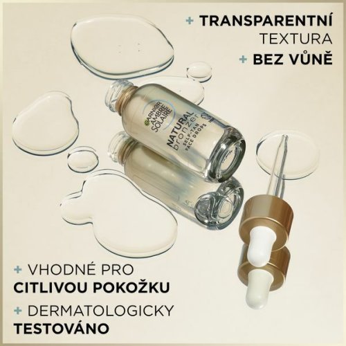 Samoopaľovacie kvapky na tvár, obohatené o kyselinu hyalurónovú a hydratačnú kokosovú vodu, poskytujú postupné opálenie na mieru.