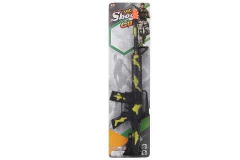 Plastový samopal o rozmere cca 45,5 x 12 cm. Po stlačení spúšte vydáva zvuk strieľania (nie je potreba batérie). Rozmery balenia cca 50 x 13,5 x 4 cm. Vek 3+