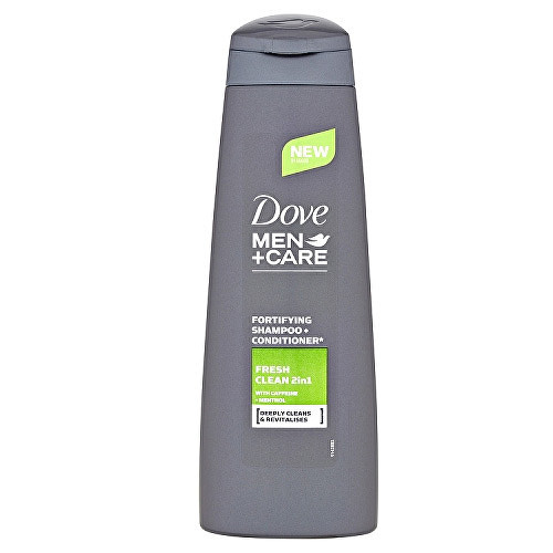 Šampón a kondicionér 2v1 Men + Care Fresh Clean od značky Dove vlasy umýva a zároveň sú ľahko rozčesateľné. Obsahuje Micro Moisture Serum, ktoré uhladzuje povrch vlasov a zanecháva ich tak hladké.