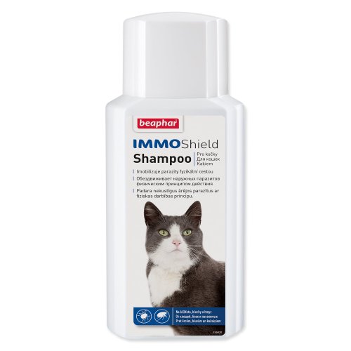 IMMO Shield šampón pre mačky obsahuje silikónový olej (dimetikón), ktorý fyzikálnym spôsobom znehybňuje blchy, kliešte a všetok ostatný hmyz , najmä komáre, roztoče, vši a všenky.