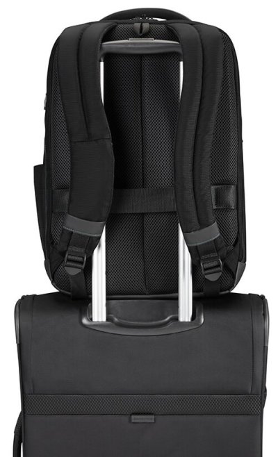 polstrovaný priestor na notebook 39,6 cm / 15,6" priestor na tablet 26,7 / 10,5" ergonomické popruhy vrecko na dokumenty vrecko na zips z prednej strany organizér smart sleeve - návlekový pásik slúžiaci k ľahkému pripevneniu na rukoväť kufra rozmer 30 x 43 x 16 cm váha: 0,9 kg objem: 19 l Záruka 2 roky.