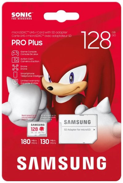 Pamäťová karta Samsung PRO Plus Sonic the Hedgehog , ktorá je rýchla rovnako ako modrý guľový blesk. Jedná sa oficiálne licencovaný produkt , ktorý poteší všetkých fanúšikov kultového ježka Sonica. Disponuje kapacitou 128 GB a ponúka tak obrovský priestor pre všetky vaše multimédiá. Umožní vám bez kompromisov uložiť hry, filmy, videá aj fotografie a vaša multimediálna knižnica môže dlhodobo rásť.