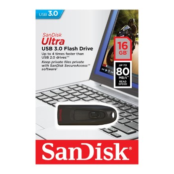 SanDisk Ultra USB 3.0 Flash Drive kombinuje rýchlejší prenos dát a veľkorysú kapacitu v kompaktnom, štýlovom balení.