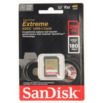 SanDisk Extreme 256 GB SDXC Memory Card 180 MB/s a 130 MB/s UHS-I, Class 10, U3, V30