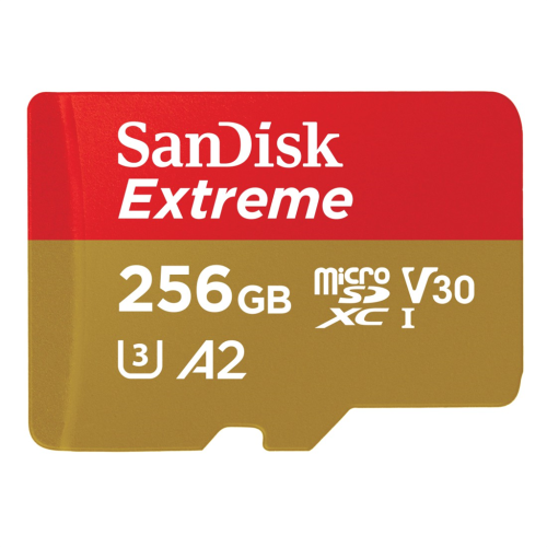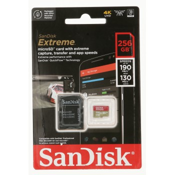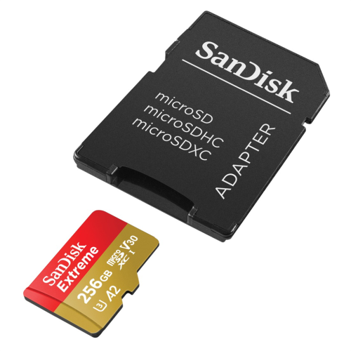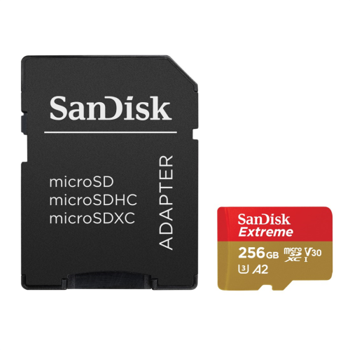 SanDisk Extreme microSDXC 256 GB + SD adaptér 190 MB/s a 130 MB/s Read/Write A2 C10 V30 UHS-I U3