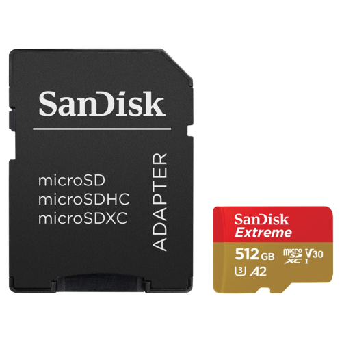 SanDisk Extreme microSDXC 512GB + SD adaptér 190MB/s a 130MB/s A2 C10 V30 UHS-I U3