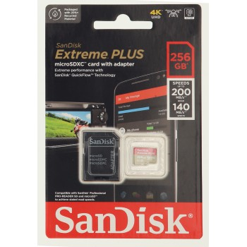 SanDisk Extreme PLUS microSDXC 256 GB + SD adaptér 200 MB/s a 140 MB/s A2 C10 V30 UHS-I U3