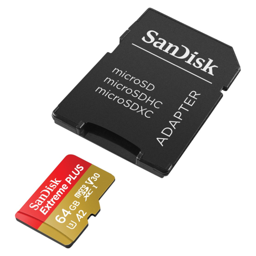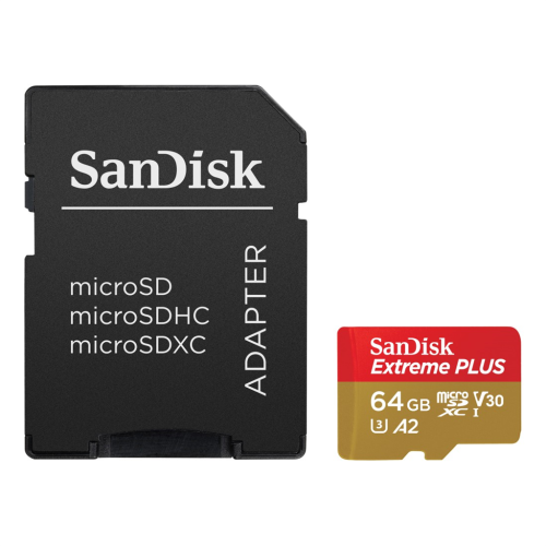 SanDisk Extreme PLUS microSDXC 64GB + SD adaptér 200MB/s a 90MB/s A2 C10 V30 UHS-I U8
