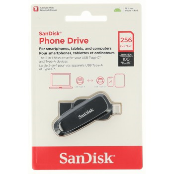 Flexibilný a praktický disk SanDisk Phone Drive umožňuje jednoducho prenášať súbory medzi smartfónom, tabletom a zariadením Mac s rozhraním USB Type-C™ a počítačom s rozhraním USB Type-A