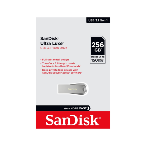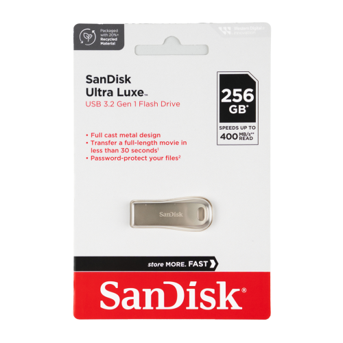 SanDisk Ultra Luxe USB ™ 3.2 Gen 1 flash disk zaisťuje rýchle presuny Vašich dát medzi jednotlivými médiami, tým skráti Vaše čakanie. Vďaka USB 3.2 Gen 1 prenesie Vaše dáta rýchlejšie ako štandardný USB 2.0. Preneste film v plnej dĺžke na disk za menej ako 30 s! Štýlový elegantný kovový dizajn je navrhnutý tak, aby bol dostatočne pevný a odolával nárazom. Umožňuje nastaviteľnú ochranu heslom, takže si môžete byť istí, že Vaše dáta zostanú súkromné a viditeľné je pre Vami zvolené osoby.