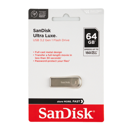 SanDisk Ultra Luxe USB ™ 3.2 Gen 1 flash disk zaisťuje rýchle presuny Vašich dát medzi jednotlivými médiami, tým skráti Vaše čakanie. Vďaka USB 3.2 Gen 1 prenesie Vaše dáta rýchlejšie ako štandardný USB 2.0. Preneste film v plnej dĺžke na disk za menej ako 30 s! Štýlový elegantný kovový dizajn je navrhnutý tak, aby bol dostatočne pevný a odolával nárazom. Umožňuje nastaviteľnú ochranu heslom, takže si môžete byť istí, že Vaše dáta zostanú súkromné a viditeľné je pre Vami zvolené osoby.