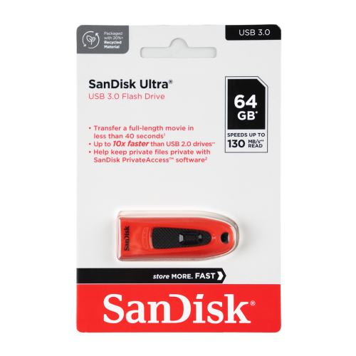 SanDisk Ultra USB 3.0 Flash Drive kombinuje rýchlejší prenos dát a veľkorysú kapacitu v kompaktnom, štýlovom balení.