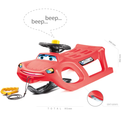 Pomocou volantu deti včas zatočia a vyhnú sa prekážke na ceste. Pre ešte bezpečnejšiu jazdu majú sane volant so zvukom . To určite dievčatá a chlapci využijú, aby upozornili, že sa k vám blíži. Vďaka oceľovým klzniciam bude jazda hladká a svižná. Akonáhle sa skĺznu, tiahnu za sebou sane pomocou lana.