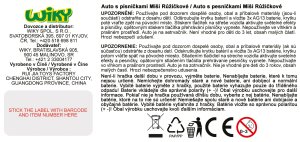 Sanitka - Míša Růžičková. Veľkosť 14,5 cm. Na zotrvačník. Svetelné a zvukové efekty, tlačidlami na streche auta 3 pesníčky Míši Růžičkové - Sanitka, Policajné, Smetiari. 3xAG13 batérie súčasťou.