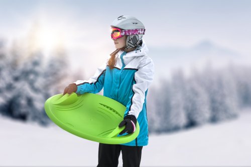 Sánkovací tanier Supernova zelená. Priemer 70 cm. Váha 1,19 kg. Nosnosť 100 kg. Prevádzková teplota -20 až 70 °C. Zatáčanie vďaka nakloneniu do strany, brzdeniu zaklonením. Rukoväte integrované do obvodu taniera. Protišmyková úprava povrchu.