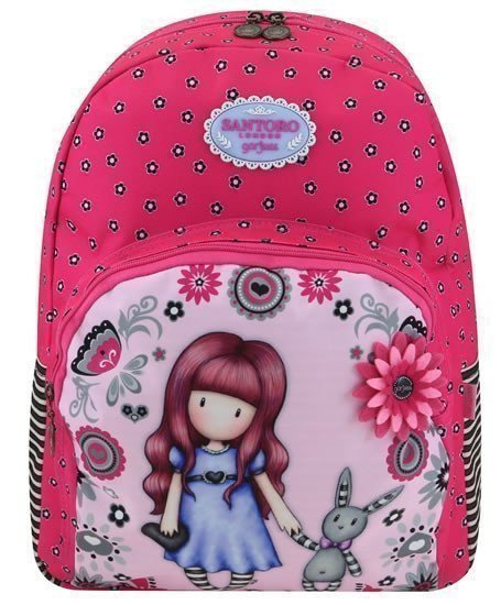 Tento batoh má jednu hlavnú komoru bez prepážok, ktorá sa uzatvára na dvojcestný zips. Predné našité vrecko má tiež iba jeden nečlenený priestor a uzatvára sa na klasický zips. Všetky jazdce majú na sebe malú ozdobu SANTORO. Chrbát je polstrovaný rovnako ako popruhy, ktoré sú zároveň nastaviteľné. Na prenášanie v ruke je tu našité pútko. Výhodou plecniaka je jeho univerzálne použitie. Rozmery: 43 x 35 x 14 cm.