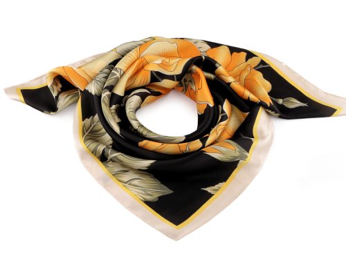 Saténová šatka ruža 70x70 cm - čierna béžová svetlá