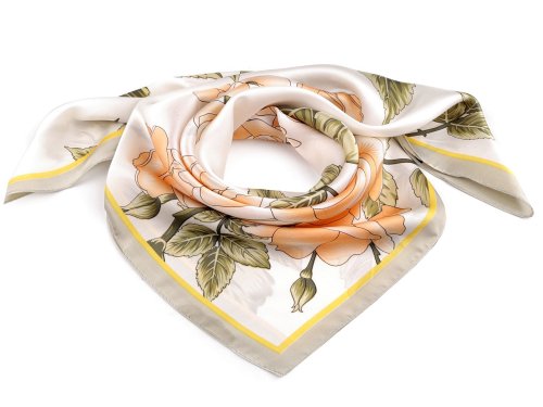 Saténová šatka ruža 70x70 cm - krémová najsvet. zelená