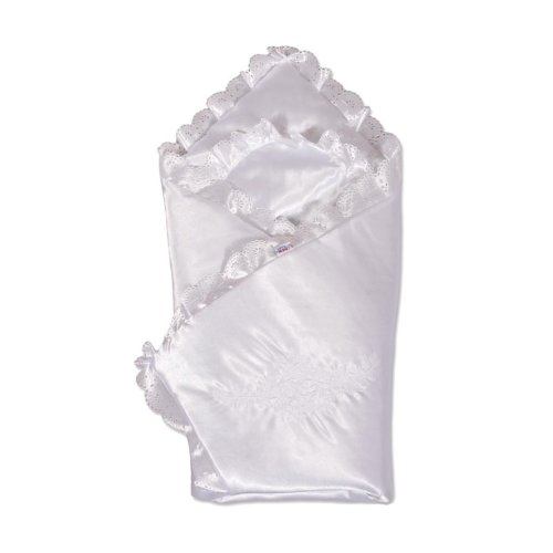 Saténová detská zavinovačka na suchý zips s čipkou. Rozmery 80x80 cm. Zloženie: vonkajšia časť: 100% polyester, vnútorná časť: 100% bavlna.