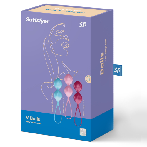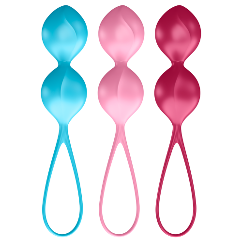 Súprava Satisfyer Balls Double obsahuje tri váhovo odlišné dvojguličky s pútkom pre jednoduchú manipuláciu.