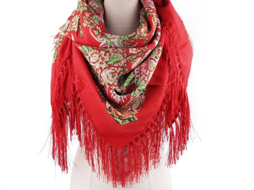 Veľká folklórna šatka je doslova ako z čias našich babičiek. Býval súčasťou tradičného oblečenia a krojov. Je vyrobený z príjemného materiálu, na všetkých stranách je ozdobený dlhými strapcami, ktoré krásne splývajú. Veľký štvorcový tvar, môžete variabilne upraviť, využijete ho ako pri nosení pod krkom, tak aj na chrbte. [Upozorňujeme zákazníkov, že kvety na šatkách sa môžu líšiť. Môže sa líšiť aj zloženie na štítkoch, materiál je polyester. Ďakujeme za pochopenie.]