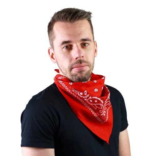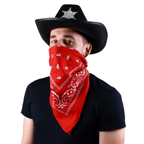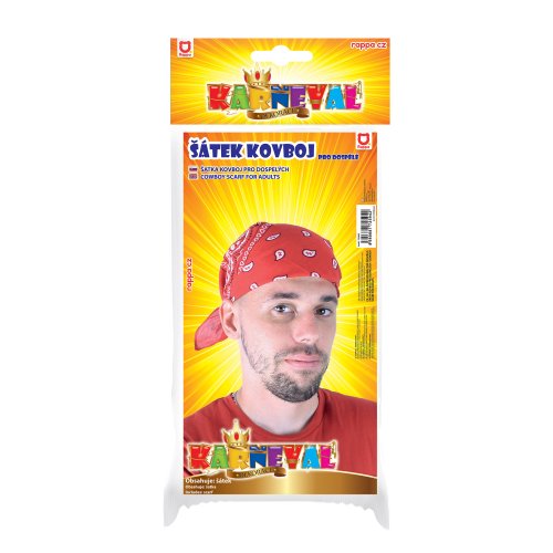 Štýlová šatka v červenej farbe s kovbojským motívom má rozmery 53 x 53 cm. Tento parádny kúsok je senzačným doplnkom pre všetky kovboje na karnevalovom večierku! Šatka je vyrobená z kvalitnej bavlny.