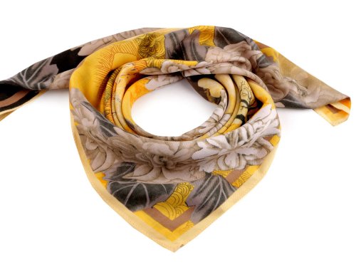 Šatka kvety 65x65 cm - žltá béžová