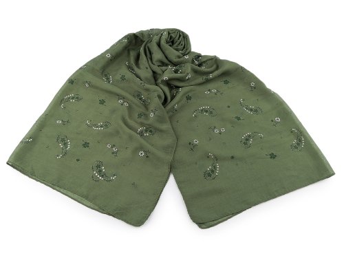 Šatka s obľúbeným vzorom paisley je vzdušná a ľahučká, veľmi príjemná na dotyk. Niektoré kvetinky sú zvýraznené gumovou potlačou. Šatka je jemne priesvitná, decentne doladí váš outfit, či už si vezmete sako, blúzku, svetrík alebo šaty. Šatky môžu mať zlé štítky, skutočné zloženie je 100% polyester.