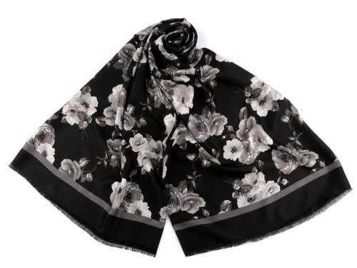 Šatka / šál / pléd kvety 90x180 cm - čierna