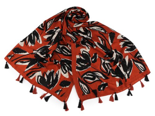 Šatka / šál / pléd s kvetmi a strapcami 80x180 cm - hrdzavá str.