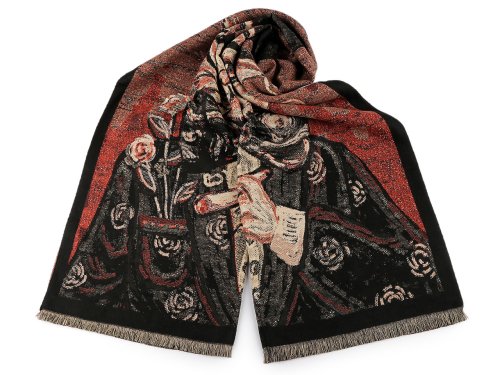 Veľký šál typu kašmír je vyrobený z hrejivého materiálu, ktorý je príjemne hebký na dotyk. [Je ozdobená obrázkami rôznych mačiek].