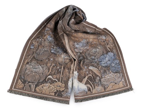 Veľká luxusná šatka typu kašmír je ozdobená kvetinovým motívom.
