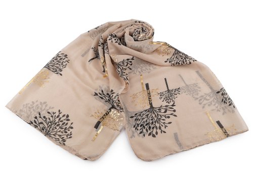 Šatka / šál so zlatou potlačou 70x175 cm - béžová svetlá