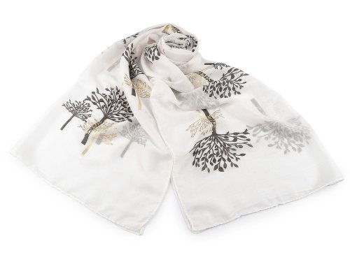 Šatka s potlačou vetvičiek je veľmi príjemná na dotyk, je vzdušná a ľahká. Niektoré vetvičky sú zvýraznené zlatou metalickou farbou. Šatka bude elegantným doplnkom pre každú príležitosť, doladí váš outfit, či už si vezmete sako, blúzku, svetrík alebo šaty. Hodí sa k formálnym aj neformálnym outfitom, môžete ho ľahko kombinovať s vašim šatníkom. Šatky môžu mať zlé štítky, skutočné zloženie je polyester.