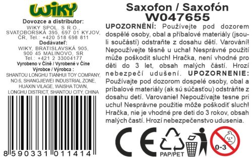 Saxofón. Veľkosť 27 cm. 2 varianty - modrá, ružová. Presné rozmery 10x6x27 cm.