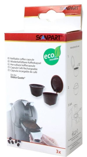 V balení 3 kusy Tvar pre Dolce Gusto Pre opakované použitie na vlastné espresso kávu v kávovaroch Dolce Gusto Užívajte si vlastnú kávu z kávovarov Dolce Gusto podľa vlastných chutí, výrazne lacnejšie a ekologickejšie