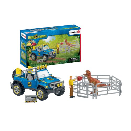 Prenikni do sveta dinosaurov! S terénnym vozidlom sa LUIS môže rýchlo dostať na základňu a chytať Giganotosauruse pomocou veľkej masovej návnady. V prípade, že pri svojej ceste vojde do bahna môže si pomocou svojej sady nástrojov ľahko vymeniť kolesá alebo pomocou navijaka vytiahnuť terénne vozidlo znova von. Terénne vozidlo od Schleich® Dinosaurs ponúka celý rad herných možností. Figúrka s pohyblivými pažami a nohami! Terénne vozidlo so základňou dino od Schleich® Dinosaurs je perfektným doplnkom výskumnej stanice (41462). Balenie obsahuje: 1x terénne auto s navijakom, 1x výskumník Luis, 1x Giganotosaurus, 1x návnada, 1x sekera, 1x turniket, 1x rýľ, 1x hliníková krabička, 4x plotový prvok, 1x vstupná brána, 1x samolepka. Schleich sú realistické a do detailov prepracované figúrky, kde sa dizajnéri sústredili na filozofiu tela, štruktúru svalov a celkový výraz postavičky. Deti sa tak môžu hrať so zvieratkami z celého sveta, pravekými dinosaurami, filmovými a rozprávkovými postavičkami, ktoré sú vernou kópiou svojich predlôh, a kúzelnými elfmi a vílami z magického sveta Bayala. Vhodné pre deti od 4 rokov.