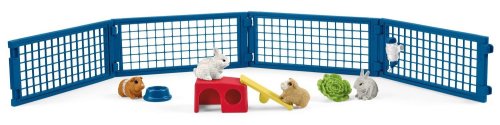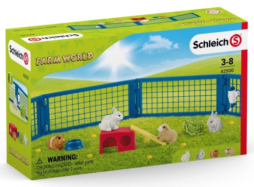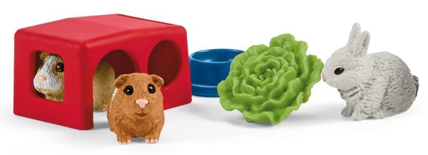 Jedinečné figúrky, ktoré sú ako živé! Figúrky a doplnky Schleich Farm World sú prepracované do posledného detailu. Prenikni do sveta zvierat, nazbieraj figúrky a objav tak zvieratá našej planéty. Balenie obsahuje: 2x morča, 2x králik, 1x domček pre zvieratká, 1x hojdačka, 1x miska, 1x napájačka na vodu, 1x šalát, 4x plot S králikmi a morčatami z farmy je stále čo objavovať. Zvieratá sa schovávajú vo svojom prístrešku, pijú z fľaše na vodu, okusujú šalát alebo prebiehajú cez hojdačku, ktorá tiež slúži ako praktická rampa, na lezenie alebo preskakovanie na strechu svojho domčeka. Schleich sú realistické a do detailov prepracované figúrky, kde sa dizajnéri sústredili na filozofiu tela, štruktúru svalov a celkový výraz postavičky. Deti sa tak môžu hrať so zvieratkami z celého sveta, pravekými dinosaurami, filmovými a rozprávkovými postavičkami, ktoré sú vernou kópiou svojich predlôh, a kúzelnými elfmi a vílami z magického sveta Bayala. Vhodné pre deti od 3 rokov.