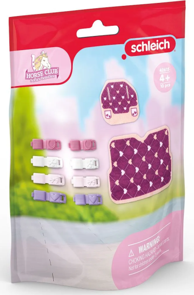 Jedinečné figúrky, ktoré sú ako živé! Je tu toľko farebných sponiek, ako sa má jeden rozhodnúť? Ktorý doplnok by sme mali pripnúť koňovi do hrivy dnes? Je tu aj dosť sponiek na chvost. Dokonca ladí s farbou srdiečok na deke pre kone. Ľahko spoznáš, kto je majiteľom tohto úžasného koňa. Jazdec má totiž vestu, ktorá s ním ladí! Figúrky a doplnky Schleich Horse Club sú prepracované do posledného detailu. Prenikni do sveta zvierat, nazbieraj figúrky a objav tak zvieratá našej planéty. Balenie obsahuje: 8x sponka do hrivy, deka pre kone, vesta pre jazdcov. Schleich sú realistické a do detailov prepracované figúrky, kde sa dizajnéri sústredili na filozofiu tela, štruktúru svalov a celkový výraz postavičky. Deti sa tak môžu hrať so zvieratkami z celého sveta, pravekými dinosaurami, filmovými a rozprávkovými postavičkami, ktoré sú vernou kópiou svojich predlôh, a kúzelnými elfmi a vílami z magického sveta Bayala.
