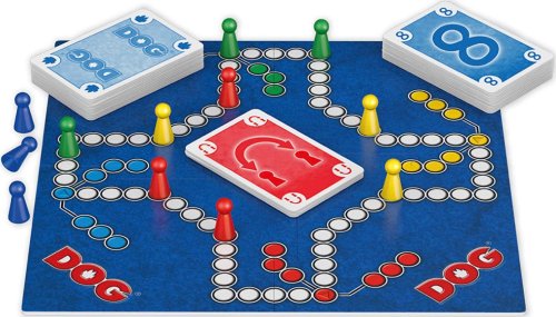 Vyzerá to ako Človeče, nehnevaj sa!, ale je to DOG! V stolnej hre Dog musí každý hráč svoje štyri figúrky bezpečne doviesť domov. Na to slúžia karty, ktoré však majú v zásobe niekoľko prekvapení. Víťazstvo dosiahnete iba vtedy, ak budete karty používať opatrne a budete na rovnakej vlne ako váš spoluhráč. Hru je možné hrať v dvoch tímoch alebo jednotlivo (pozri zvláštne pravidlá pre 2 a 3). Všetci hráči sa snažia čo najrýchlejšie presunúť svoje vlastné tri figúrky zo štartovej oblasti do domčeka. Figúrky sa presúvajú pomocou kariet. Akonáhle sa všetky figúrky jedného hráča dostanú do domčeka, pomôže hráč svojmu partnerovi presunúť jeho figúrky aj čo najrýchlejšie do cieľa. Hru vyhráva tím, ktorý ako prvý umiestnil všetkých svojich 8 figúrok do domčeka. Pripravte sa na vzrušujúcu zábavu! Balenie obsahuje: 65 kariet, 12 figúrok, 1 hraciu dosku, 1 pravidlá Hra je určená pre 2 až 4 hráčov vo veku od 8 rokov.