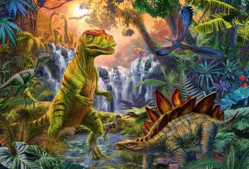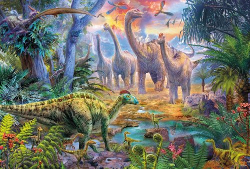Štyri puzzle pre deti so 60 a 100 dielikmi s obrázkami dinosaurov.