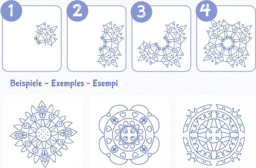 Jednoducho pečiatkujte a vyfarbujte. Pečiatkujte klasické mandaly alebo pečiatky opakovane kombinujte a vytvárajte vlastné vzory a obrázky.