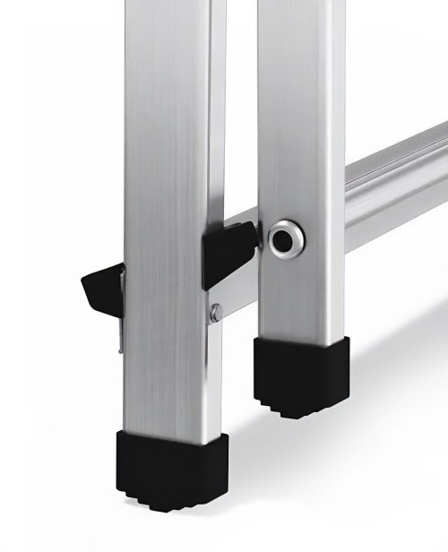 Typ - 1x4 jednostranné s madlom Pevná 4-stupňová rebríková konštrukcia s jednostranným vstupom Bezpečné madlo 60 cm Široká pracovná plošina 25 cm x 26 cm Vrúbkovaná plocha schodíkov. Špeciálne protišmykové nožičky zaisťujú najvyšší bezpečnostný štandard. Háčik na zavesenie pre komfort pri práci.