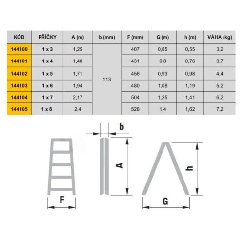 Schodíky Al, 8 priečok, nosnosť 150 kg, ALVE 1918